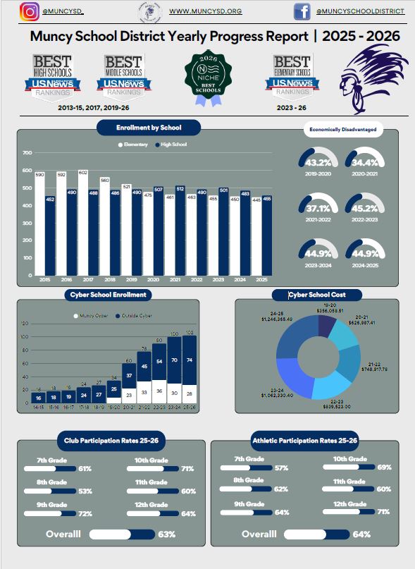 Board Members Board Meeting Agendas Board Meeting Minutes Public Input Procedure 2025 – 2026 School Board Meeting Schedule 2025-2026 School District Goals 2024-2025 Superintendent Evaluation Muncy School District Infographic Click to View
